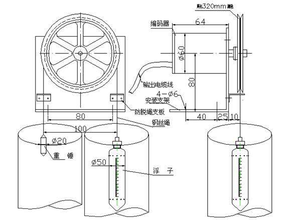 HSW型浮子式水位計(jì),選用光電式系列、接觸式系列或數(shù)顯系列編碼器,以精密的變速機(jī)構(gòu)、線輪、不銹鋼絲繩、 重錘、防浪錘和浮子等構(gòu)成。該傳感器安裝在測(cè)井口或測(cè)管上 方,當(dāng)液位變化時(shí),浮子隨之上升或下降,鋼絲繩便帶動(dòng)線輪做 旋轉(zhuǎn)運(yùn)動(dòng),與線輪同軸連接的編碼器就輸出與液位對(duì)應(yīng)的數(shù)字 信號(hào)送至智能測(cè)控儀,從而達(dá)到了對(duì)液位的實(shí)時(shí)測(cè)量與顯示的 目的。該傳感器結(jié)構(gòu)合理,抗干擾能力強(qiáng),分辨率高,量程大, 壽命長(zhǎng),有掉電后信號(hào)跟蹤記憶功能,它能夠長(zhǎng)期用于液位測(cè) 量并能保證性能的穩(wěn)定可靠,是江河湖泊、水庫(kù)、船閘、水電 站、水文站、水廠及石油化工等行業(yè)理想的液位傳感器。