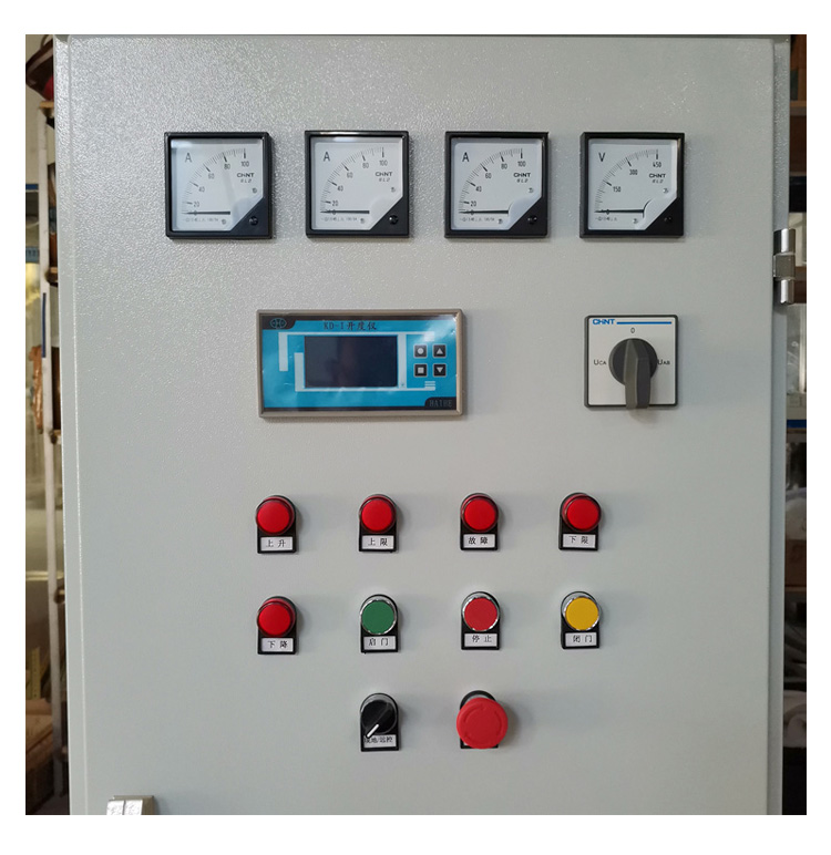可以控制閘門啟閉機(jī)的運(yùn)轉(zhuǎn),通過對應(yīng)的操作按鈕,來實現(xiàn)相應(yīng)的功能(上升、下降、急停)。
